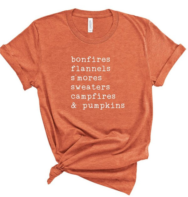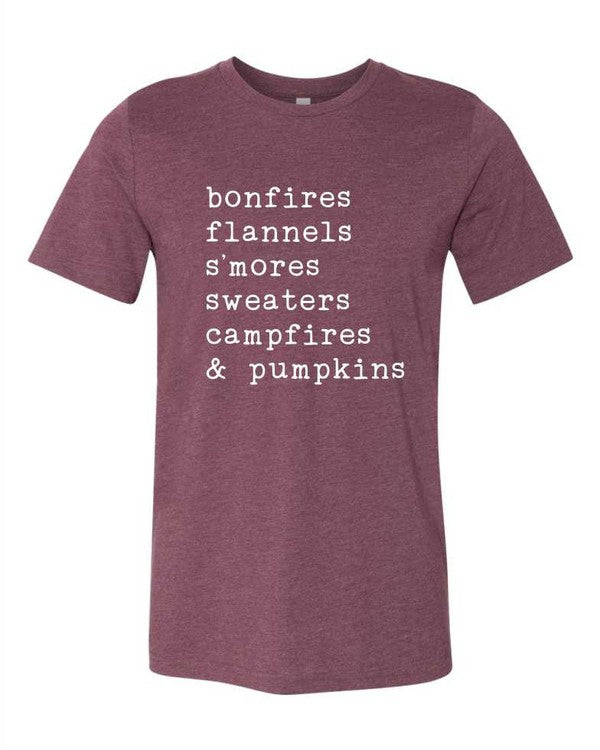 bonfires flannels s'mores sweaters campfires & pumpkins Graphic Tee