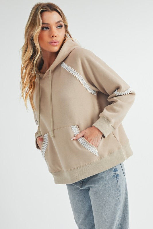Didi hoodie is designed with our softest fabric to keep you warm and comfortable all season long. With its oversized relaxed fit, intricate lace trim detailing adding a touch of femininity and sophistication. She is sure to become your go-to piece for relaxing at home or running errands.