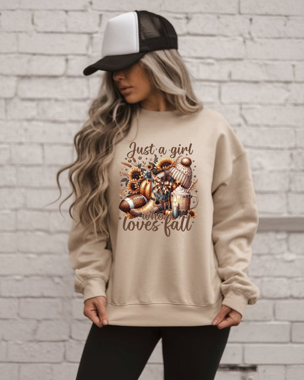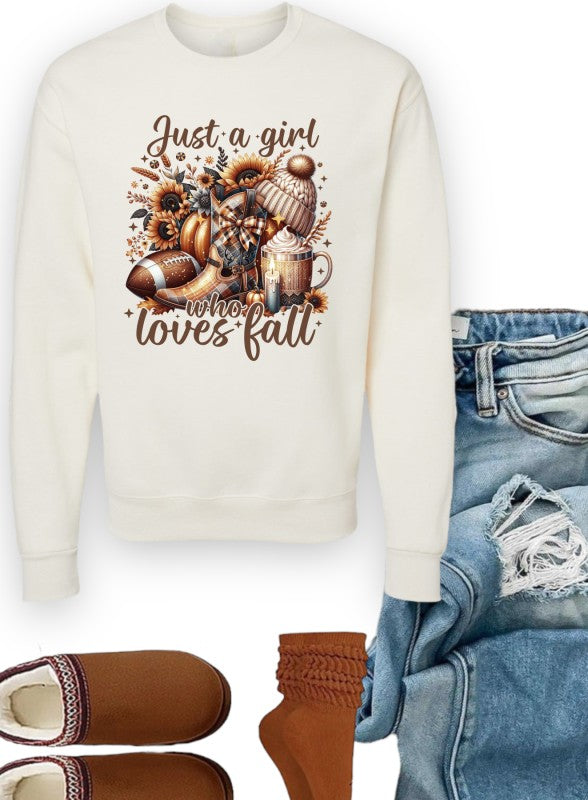Just a Girl Who Loves Fall Graphic Crewneck Sweatshirt8.0 oz. pre-shrunk fleece